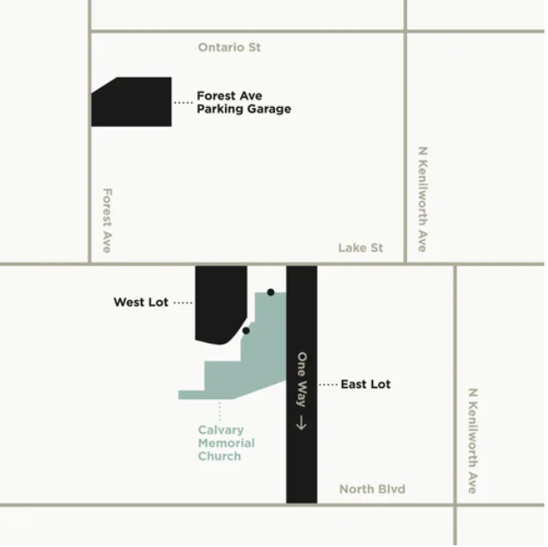 There is a free parking garage located at 170 Forest Ave, across the street from Calvary. If you go north of Lake Street on Forest Ave you can enter the garage on the east side of the street, across from Austin Gardens.